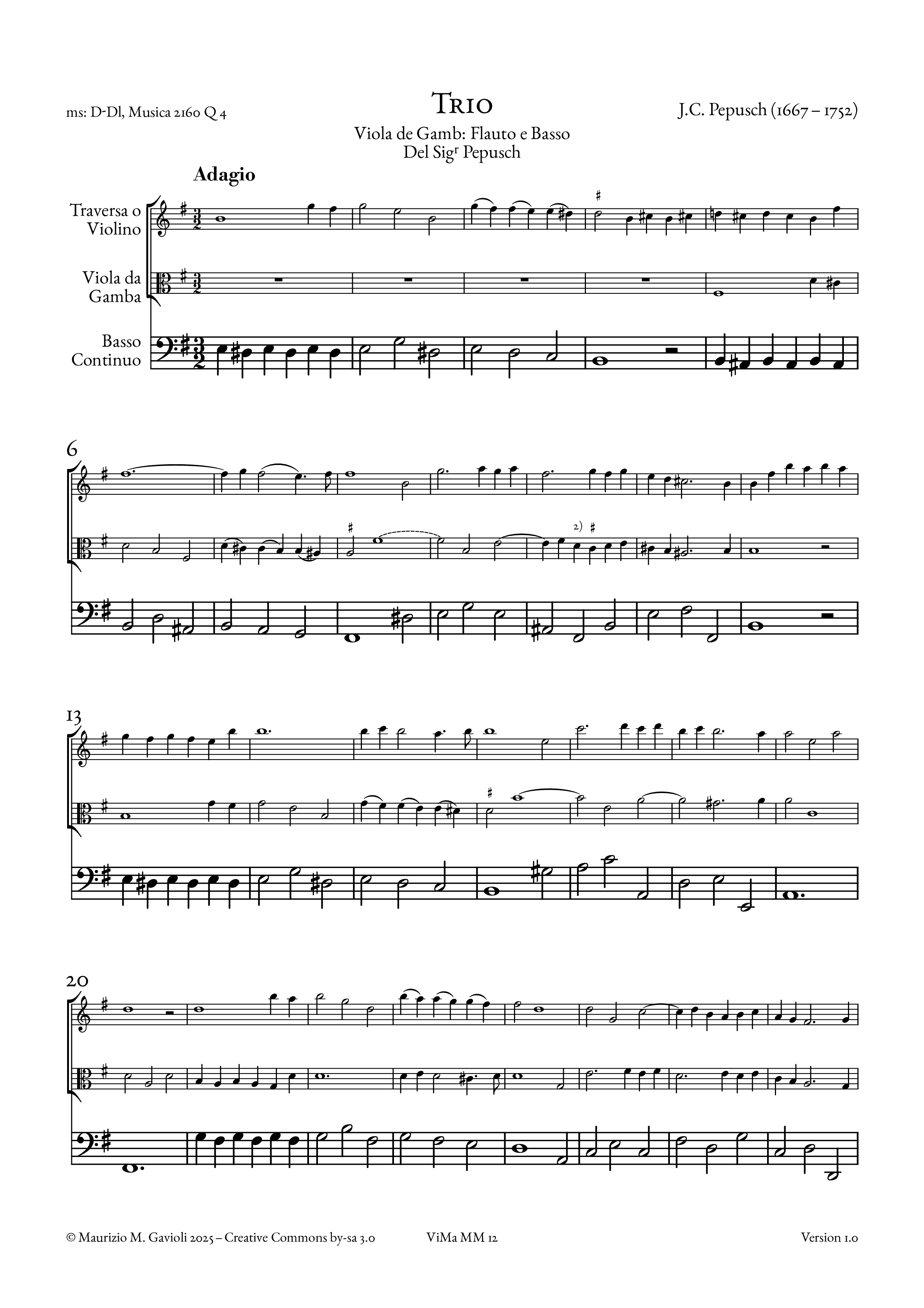 Trio Viola da Gamba, Flauto e Basso (E min.) (1720)