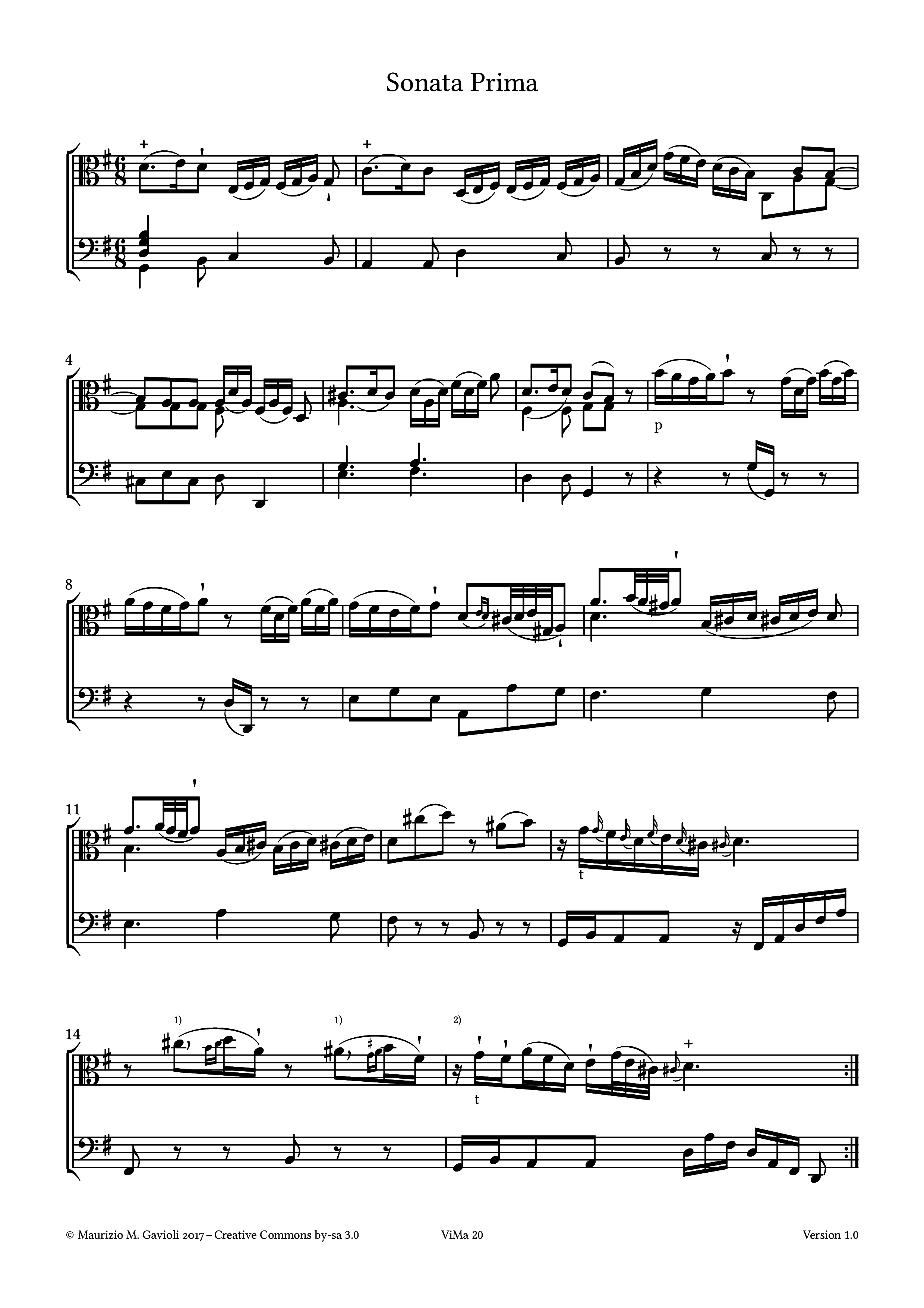 Sonata Prima (G maj.), Sonata Seconda (A maj.), Sonata Terza (F maj.), Sonata Quarta (D maj.), Sonata Quinta (G min.), Sonata Sesta (A min.–maj.)