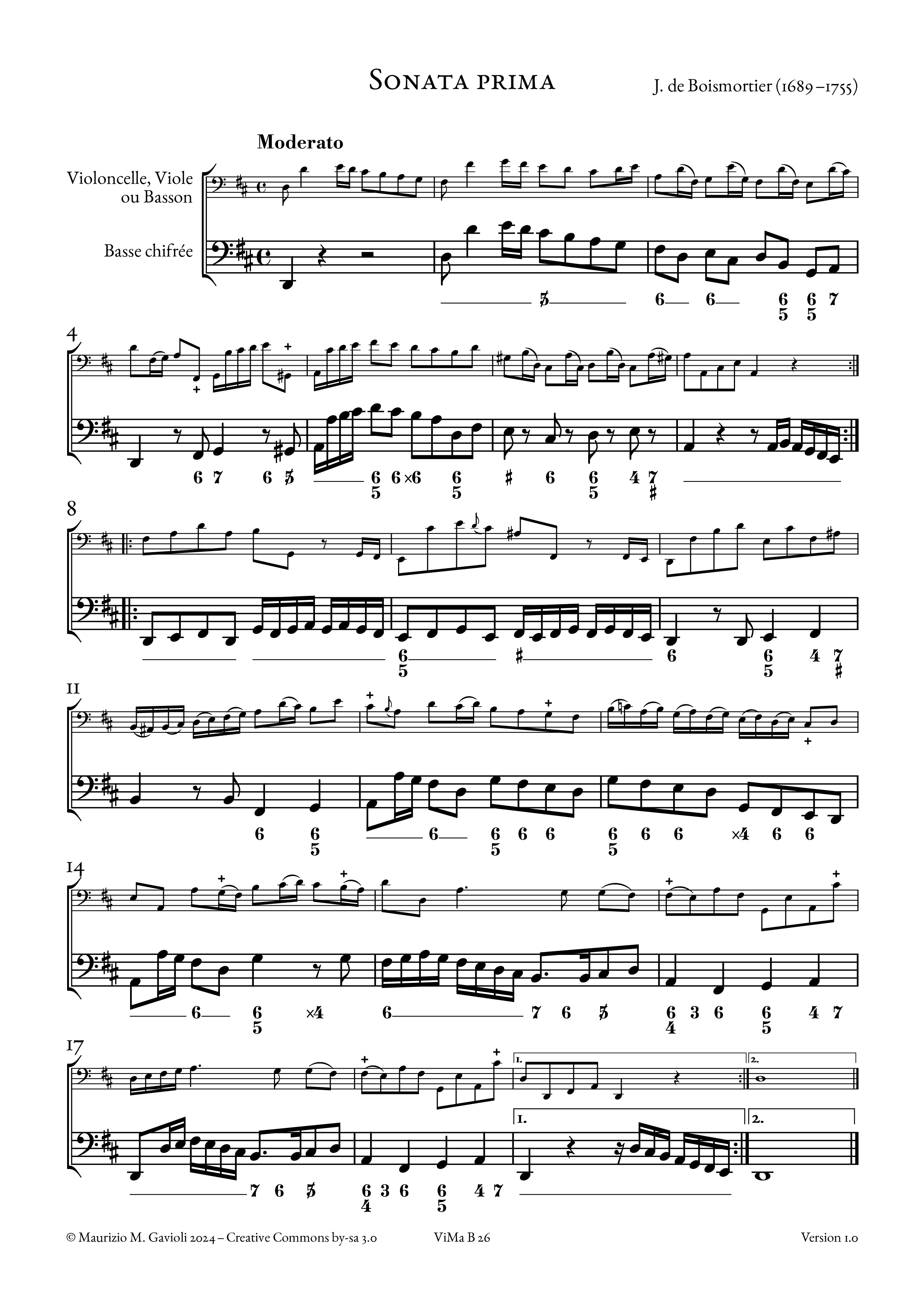 Vingtsixiéme Œuvre de Mr Boismortier Contenant Cinq Sonates pour le Violoncelle, Viole, ou Basson, avec la Basse chifrée; Suivies d’un Concerto pour l’un ou l’autre de ces Instrumens (1729)