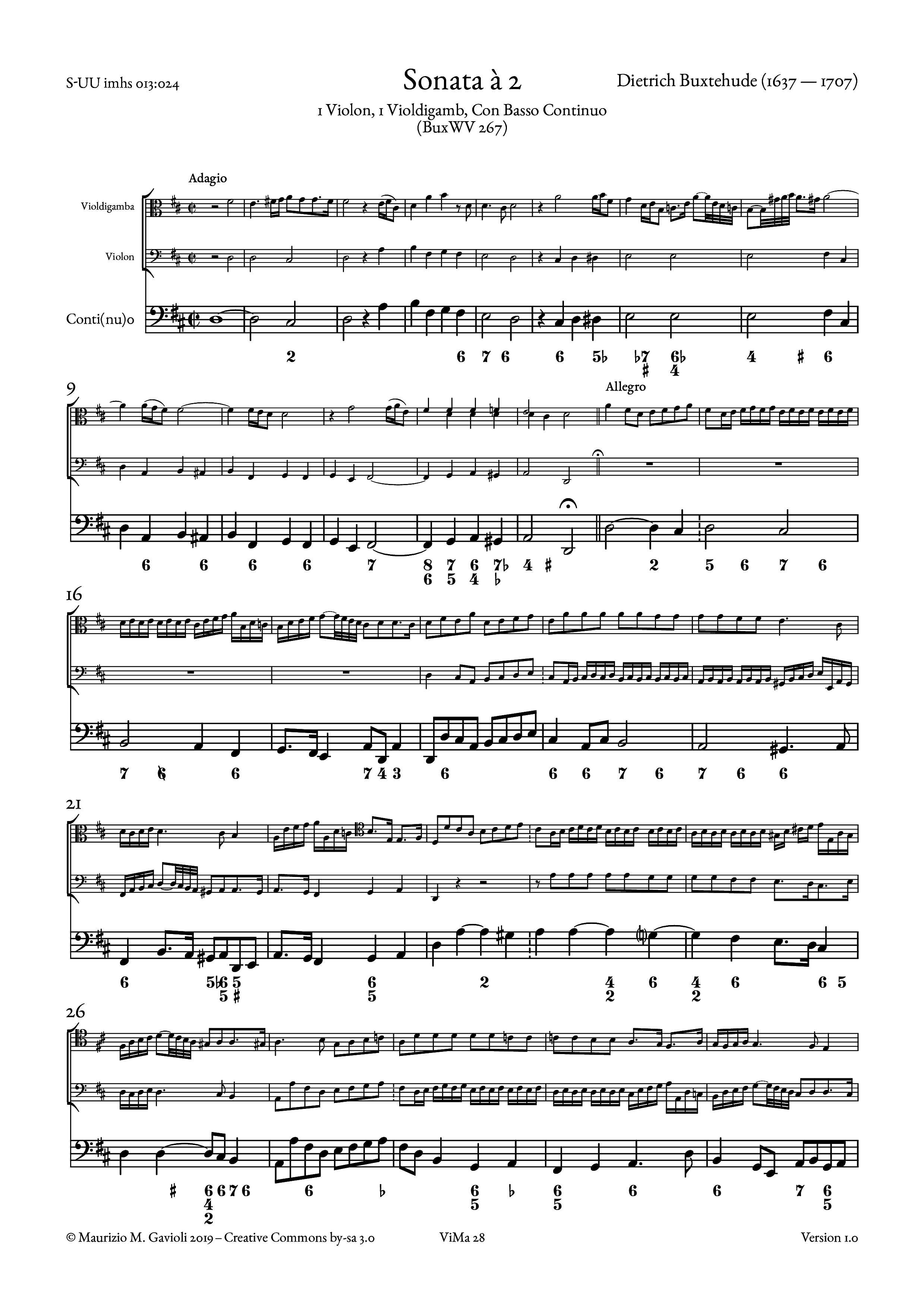 • Sonata a Violone, Viola da gamba e Basso Continuo (Re magg., BuxWV 267)