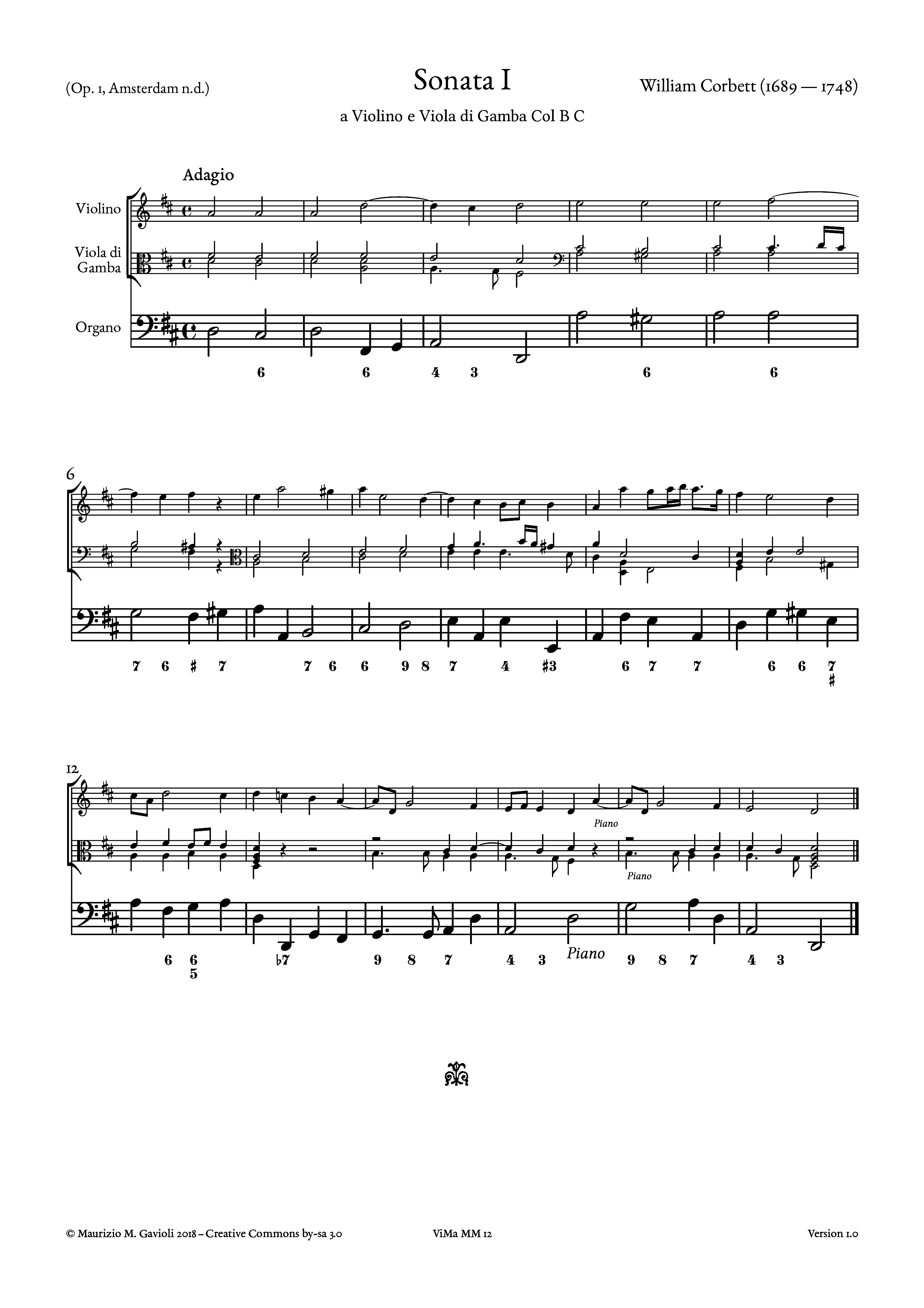 Sonata I a Violino e Viola di Gamba col BC – Op. 1, no. 1 (1702)