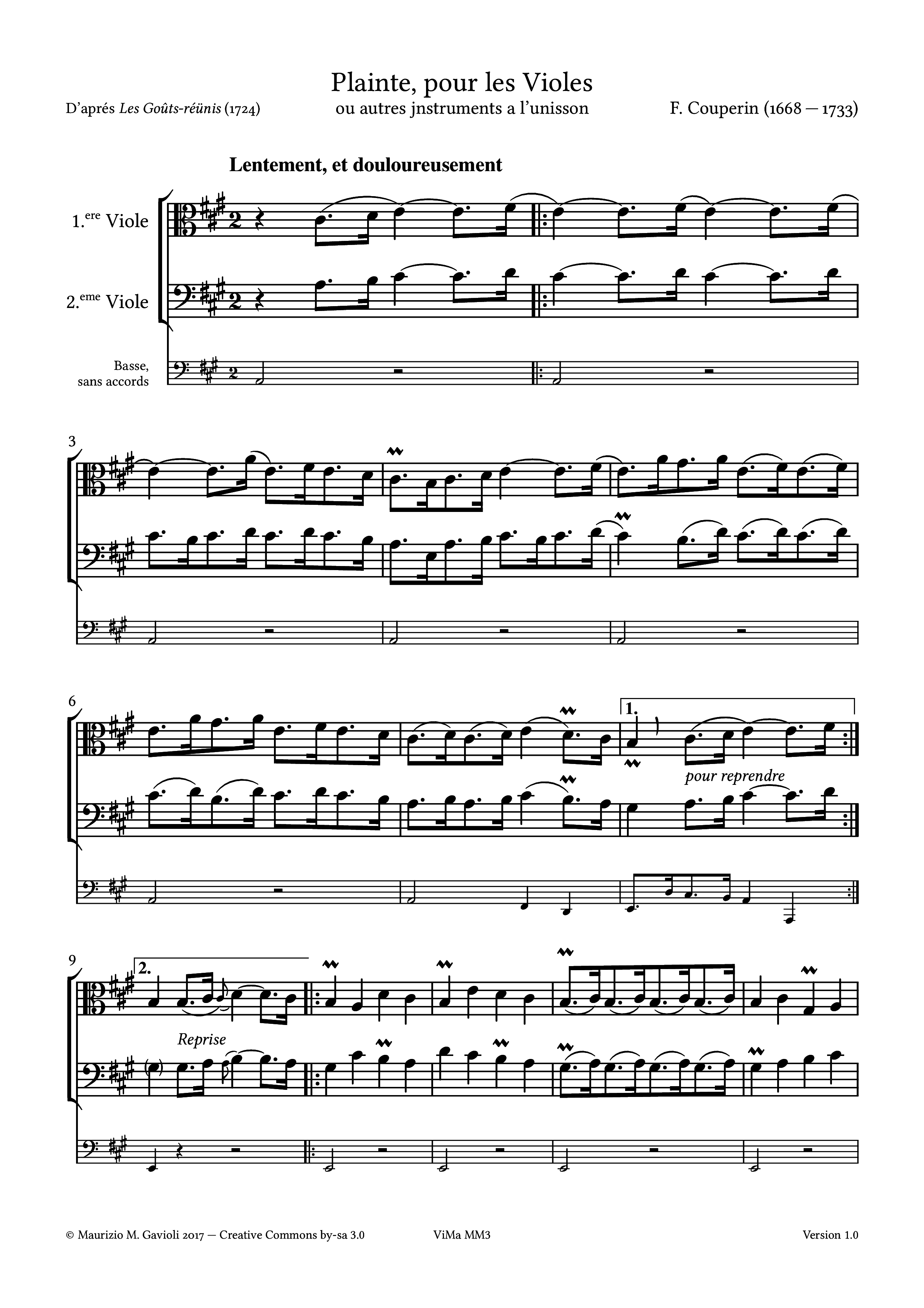 :Performing edition of the three pieces for 2 violes de gambes from Les Goûts Réünis.