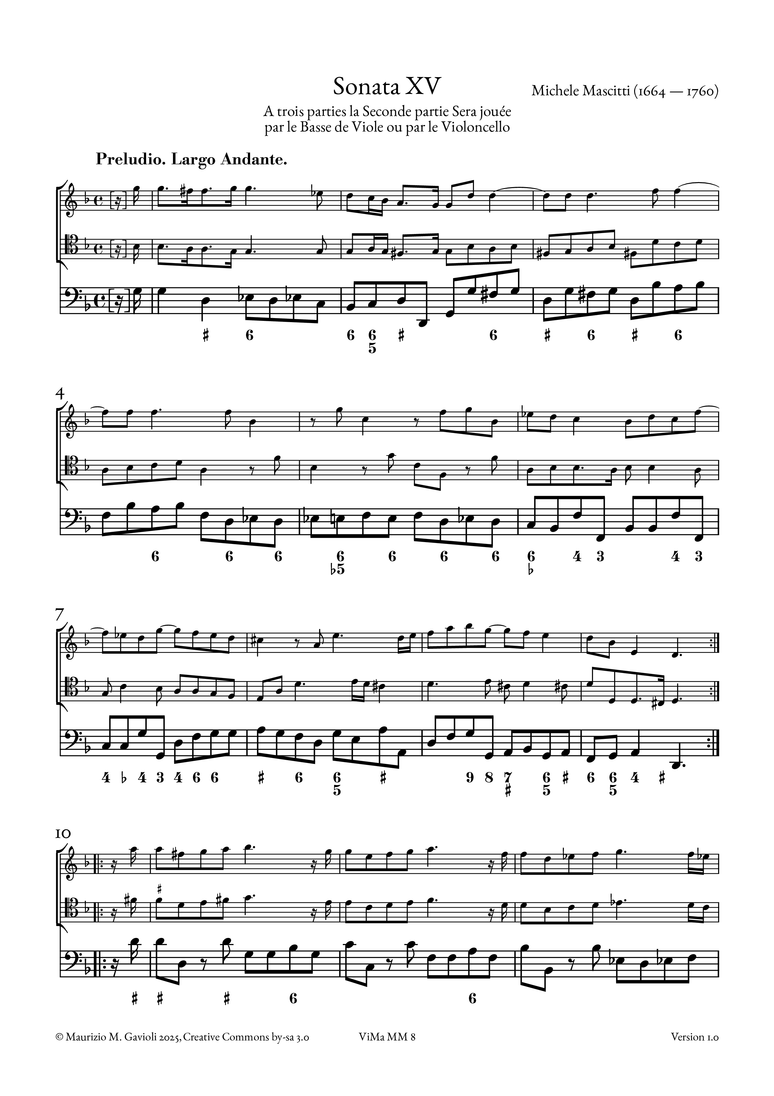 Sonata no. XV op. 6 for Violin, Cello or Viola da gamba and Basso Continuo (1722)