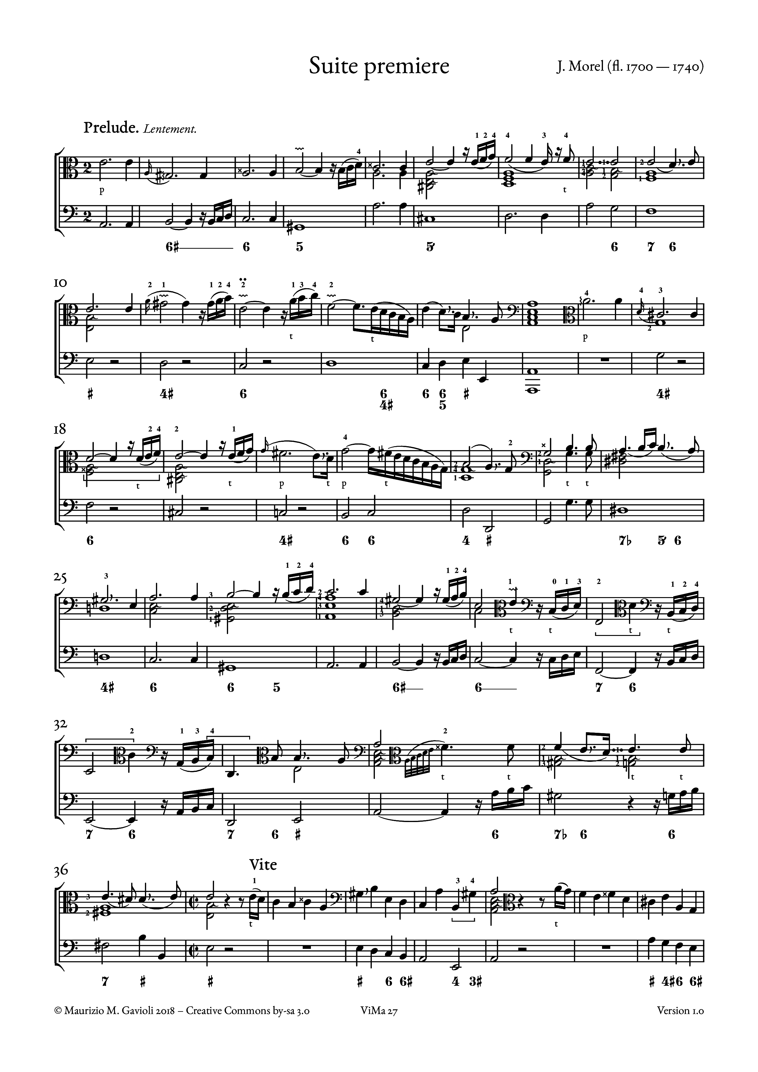 :Complete modern performing edition of the four suites and of the Chaconne en trio in the 1709 Paris print.