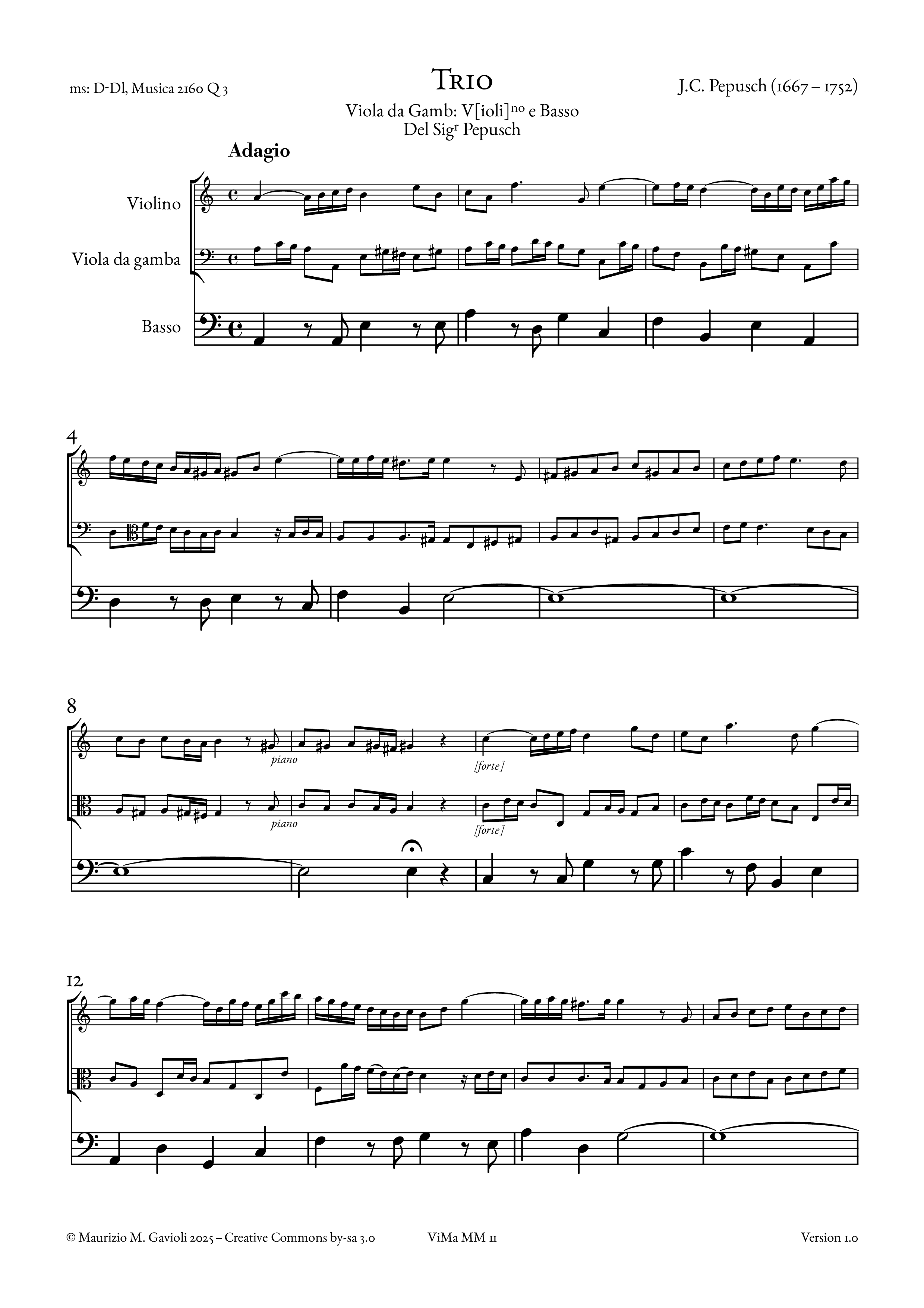 Modern performing edition of the Trio in the Musica 2160 Q 3 manuscript of the Sächsische Landes-