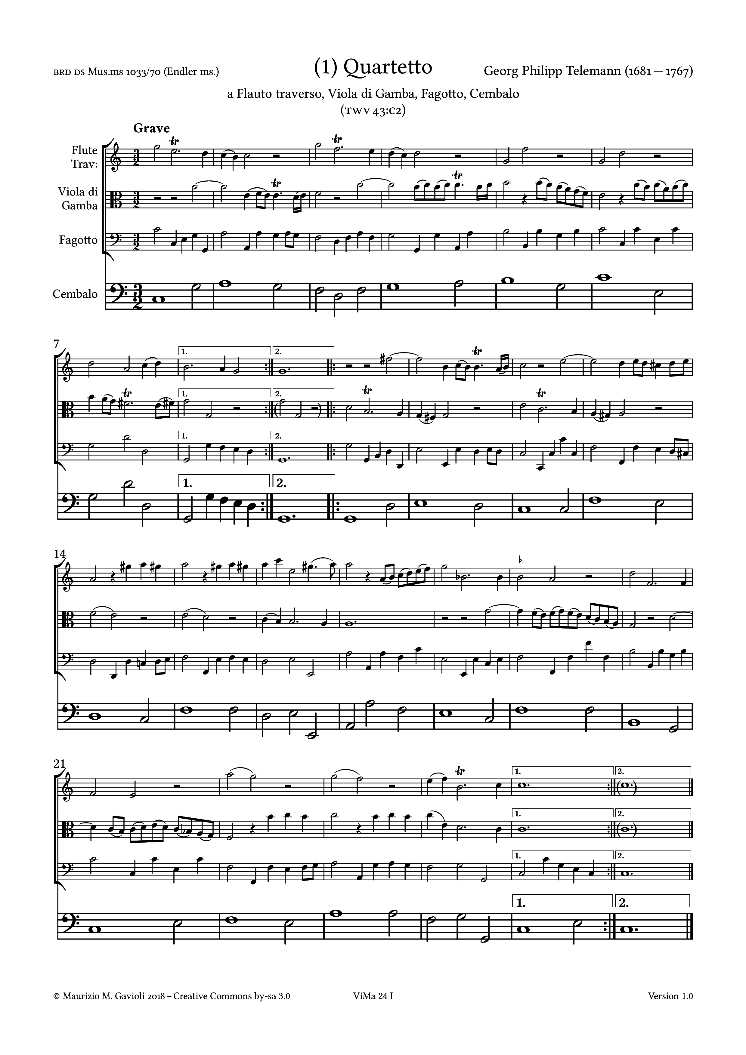 · (1) Quartetto in C major (TWV 43:C2)